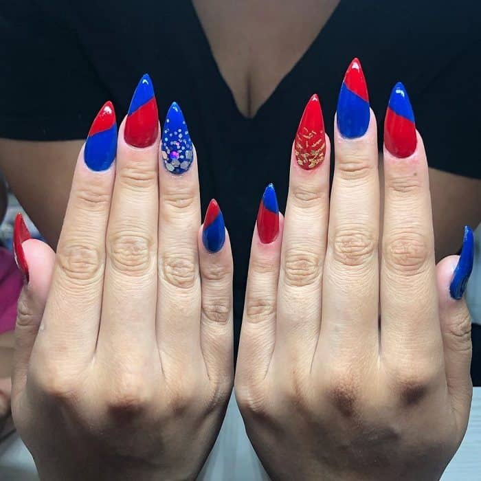 Coffin Red And Blue Nail Designs : 38 Red Nails Design Ideas Different Coffin Acrylic And Polish Methods Page 5 Of 38 Womens Ideas : Blue toe nail design for kids.